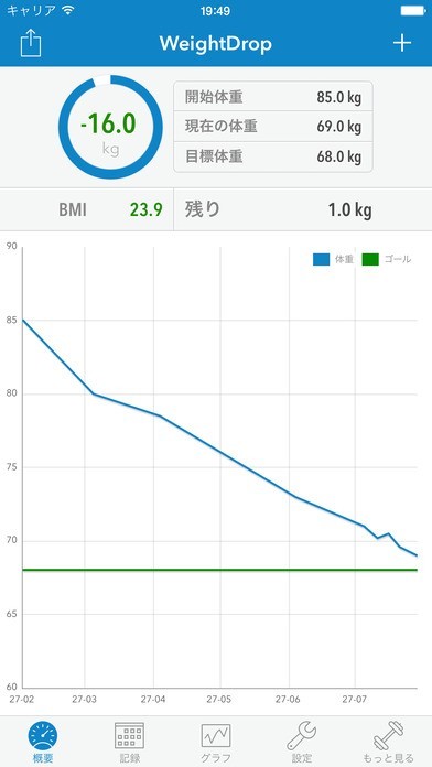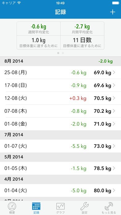 減量したいのになかなかできない、そう思ってる方は多いはずです。でも、ただ漠然と痩せたい!と思うだけではダイエットは上手くいきません。このアプリがあれば、毎日の体重の推移を簡単に把握できちゃいます。