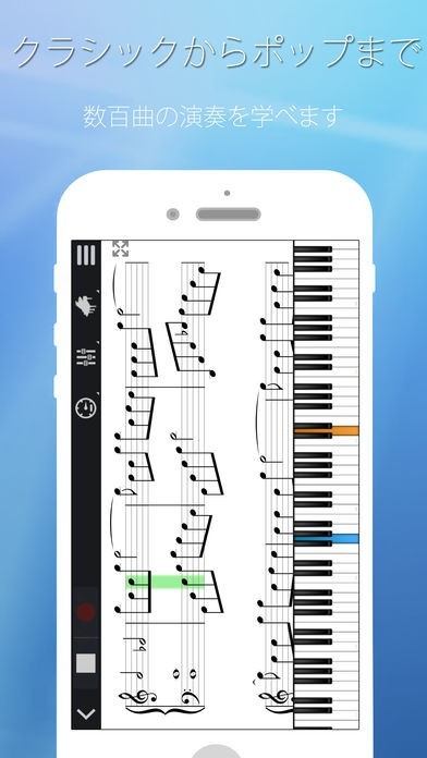 App Storeより引用パーフェクトピアノはスマートフォン用に設計されたピアノキーボードシミュレーターであり、リアルピアノサウンドを利用している。このアプリを使って正確にピアノを勉強することができる。