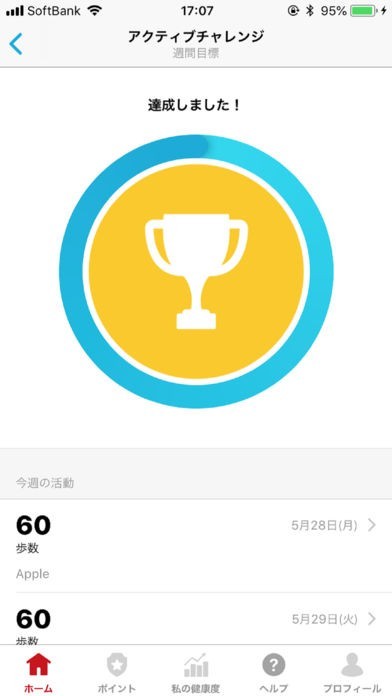アクティブチャレンジ機能を搭載しています。アプリが出すお題に沿って運動を行い、クリアしていくことで、健康増進に役立てることができるようになっています。毎週変わるお題で楽しみながら運動できます。