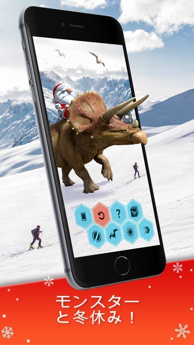 スマートフォンのスクリーンに映し出されるのは、古代に生息していたドラゴンや、現実世界に存在しない巨大なモンスターなどを、リアルの世界とコラボさせることが出来ます。
