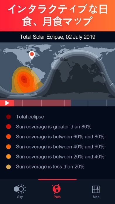 App Storeより引用エクリプスガイドは(Eclipse Guide)、日食、月食を観測するための包括的で使いやすいガイドです。これまでと今後の日食、月食を体験し、理解するために必要な情報をすべて提供しています。