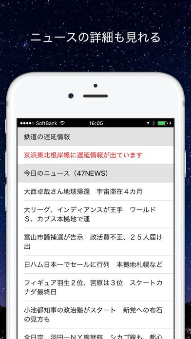 ・ニュースや電車の遅延情報の詳細ページへのリンク