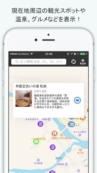 箱根観光地図 - 現在地周辺の観光スポット・温泉・グルメを検索のスクリーンショット
