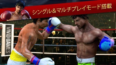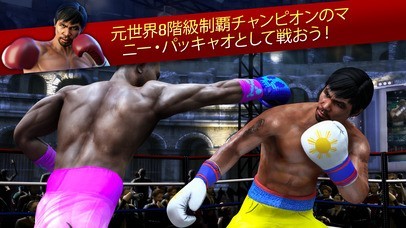 世界チャンピオンとして8連覇を成し遂げたマニー・パッキャオが登場! 「Real Boxing Manny Pacquiao」は、リアルな闘いが楽しめるボクシングゲームです。 マニー・パッキャオを自分のキャラクターとして操作可能。 オリジナルカスタマイズによって外見や装備の変更も行えます。 強敵を撃破していくためには、ジムでトレーニングを積んでステータスをアップさせましょう。 1人でのプレイはもちろんのこと、オンラインモードを利用すれば友達と試合できるのも楽しいポイントとなっています。