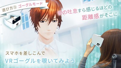 バーチャルリアリティーを楽しむための、スマートフォン専用ゴーグルを頭部に装着することで、360度すべて、ストーリーの世界観に入り込んで、彼の愛を受け取ることができます。