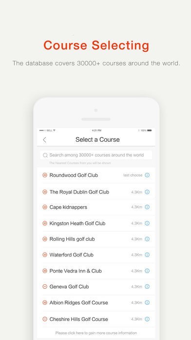 Fairway GPS: The database covers 30000+ courses, which is more than 95% courses around the world. We are aimed to provide more accurate and high-quality fairway GPS.