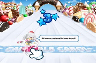 雪ゾリで滑って来るキャニマルが、ゴールラインに着いた時タッチすると、可愛い動物声のクリスマスキャロルが完成。