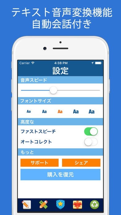 旅先やネットで見かけた英文を今すぐ翻訳したい!そんな時にはこちらのアプリの翻訳機能が活躍してくれます。原文を入力するだけですぐに翻訳を開始。原文と訳文を同一画面に表示してくれるため、翻訳結果の比較も楽に行えます。翻訳履歴機能を利用することで、一度翻訳した文章は履歴一覧からすぐに見つけ出せるのも嬉しいポイント。履歴を上手に活用すれば、必要な時に必要な文章をさっと取り出すことができるでしょう。また、テキスト音声変換機能も充実しており、翻訳した英文は合成音声による発音が行えます。音声スピードをお好みで調整すれば、アクセントの確認にも利用することができます。