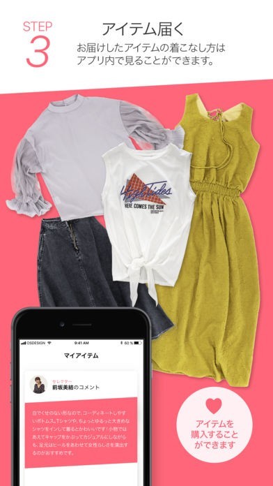 届いたワンピースやスウェットは自由に組み合わせることができます。しかし、コーディネートに迷った場合はアプリを参考にしましょう。おしゃれな使い方を提案してくれます。