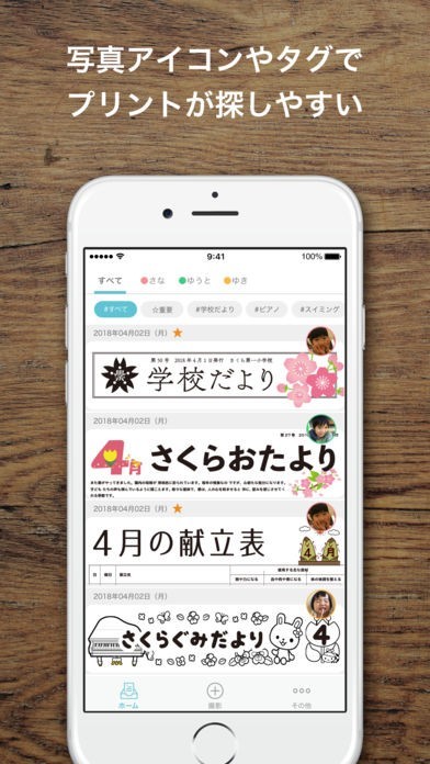 小学校や幼稚園等で子供が持って帰ってくるたくさんのプリント簡単に整理できるアプリです。プリントの写真を撮るだけで、外出先でもプリントの内容を確認することができます。