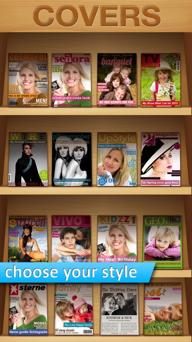 編集機能あり!写真を選択するだけで、雑誌カバーを飾ることが可能
