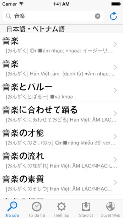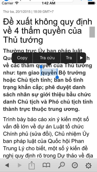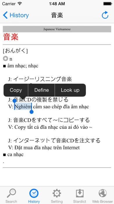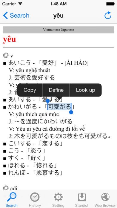 ウェブブラウザが搭載されているのでアプリからウェブページを閲覧することができます。分からない言葉があればその部分を選んで、そのまま辞典で検索することができます。