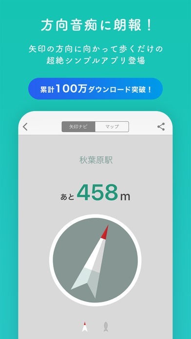 地図を見ても前後左右どっちへ行けばいいのか分からないという方にオススメ。向かうべき方向を矢印が示してくれます