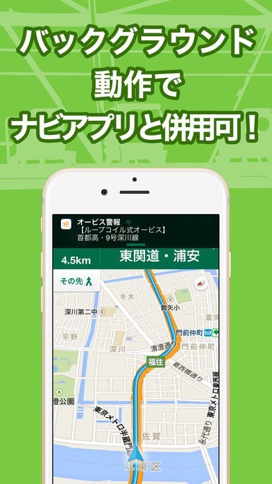 「オービス警報」は、オービスや取り締まり情報を配信してくれる便利アプリです。 オービスデータを地図上にアイコンとして表示する他、移動式小型オービスにも対応可能。 交通状況も地図に表示してくれるため、ドライブにも活用できるのが特徴です。 警報機能を搭載しており、オービスポイントが近づくと警報でお知らせしてくれます。