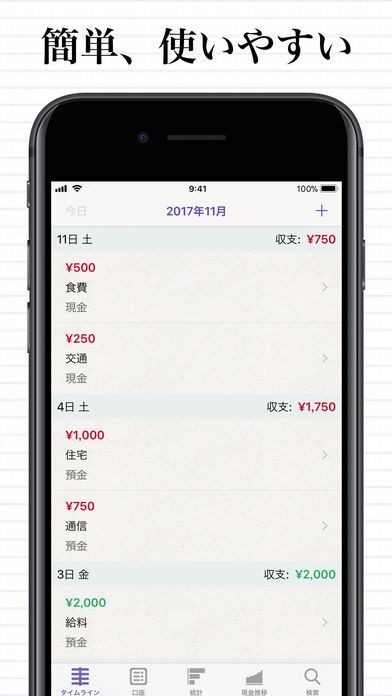 App Storeより引用帳簿は、iOSデバイスで利用可能な家計簿アプリです。あなたの支出と収入を記録します。口座の履歴を追跡します。