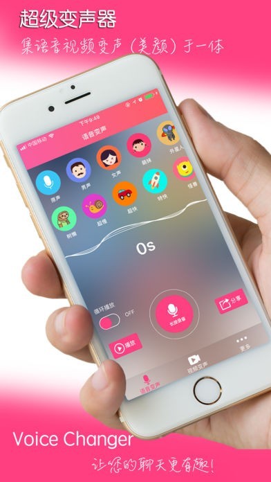 App Storeより引用スーパーの声変わりする器(ヴォイスChanger)は1項のビデオの声変わりすると音声を一体の声声変わり処理ソフト、システムを含むプリ定義の男声、女声、老人、ロボット、萌妹などの効果を、そして変声後の動画共有からQQ、微博、マイクロ手紙WeChatやFacebookなどの社交化プラットフォーム簡単に面白くて、あなたの声は雌雄莫辩、試してみる価値は!