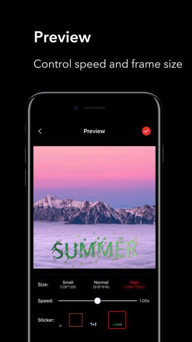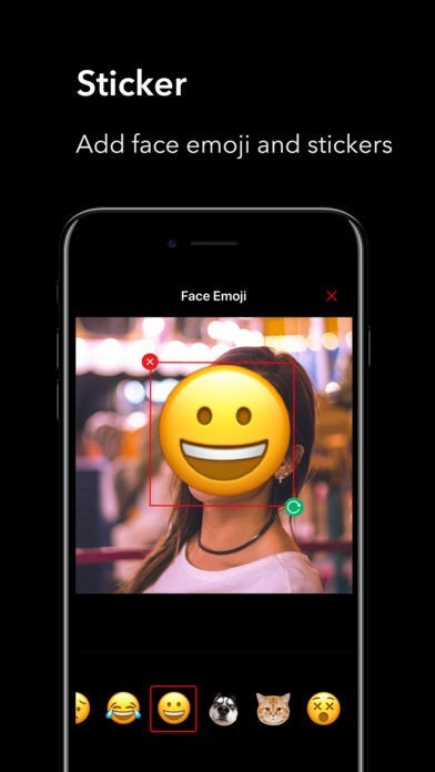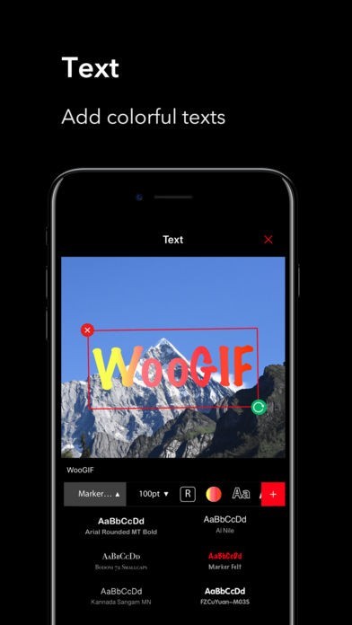 - テキストと絵文字から GIF を作り、好きな所へドラッグ。またピンチしてサイズをズーム