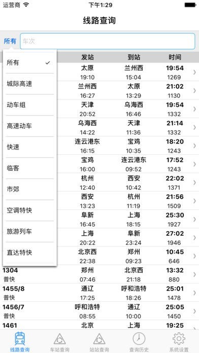 全国列车は中国で運行している列車に関する情報収集アプリです。時刻表やルート検索、列車番号を利用しての時刻・運賃情報など、中国での鉄道旅行を計画されている人にお勧めできます。