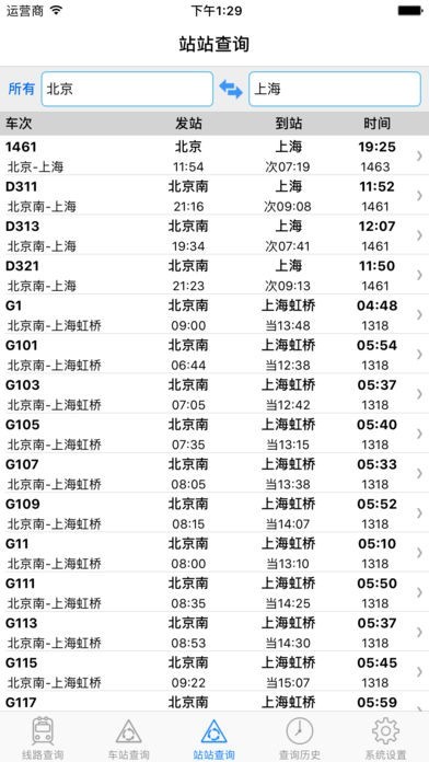 中国で行きたいところがあるけど列車がいっぱいきて間違えて乗っちゃいそう、と不安になったら列車番号でも検索できるので簡単に確認できます。人に聞きたくても話せず不安に思ったらアプリで確認しちゃいましょう。