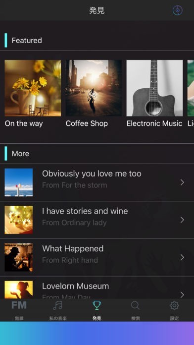「FM Music Story」は、洋楽から邦楽、アニメやロックなど様々なジャンルの楽曲をスマートフォンで自由に聴くことが出来るアプリになります。アーティストや楽曲名、アルバム名などで音楽を検索することとが出来るようになっているほか、ダウンロードしてオフラインでも音楽を聴くことが可能となっています。