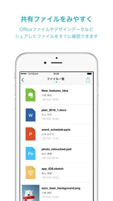 ワードやエクセルなどのoffice形式に対応したファイル共有機能も用意。ファイルの受け渡しも楽々!