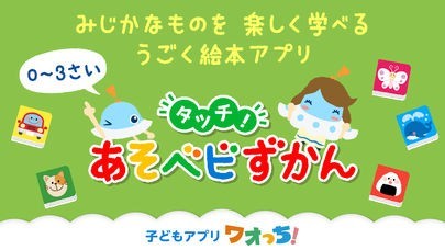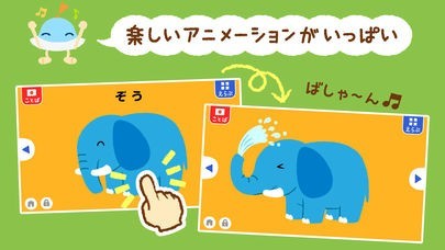 赤ちゃんから3歳までの幼児が使える知育アプリです。子供が好きな可愛らしい絵のアニメーションが興味を引き付け、つい画面をタッチしたくなります。画面をタッチすると音や動きが変化し、自然に言葉を覚えていきます。