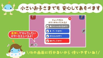 シンプル設計でアプリを起動して1分足らずでゲームを始められるので、赤ちゃんや子どもがぐずった時に便利です。また、ロックしたい事柄は、事前に親が機能を制限することができるので安心です。