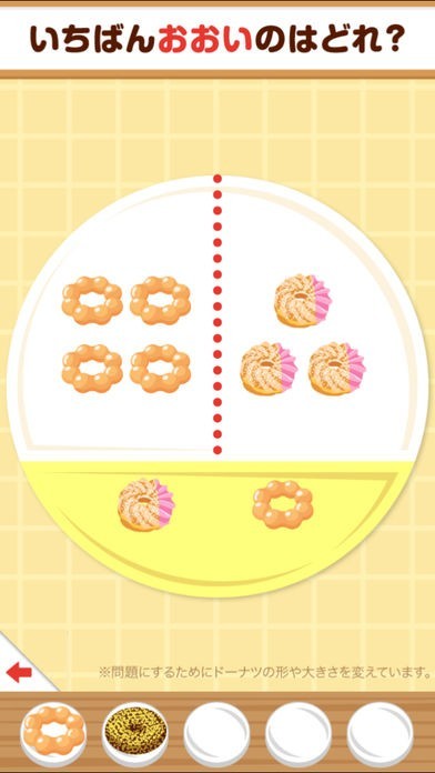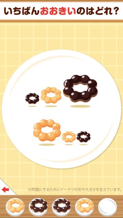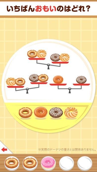 3つの難易度を収録!ドーナツの重さや大きさを比べられる!