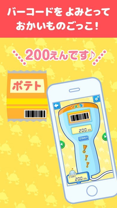 スマートフォンのカメラ機能を使いバーコードを読み取ることが出来ます。カメラを商品のバーコードに向けることでスキャンされ値段が表示されます。スキャン技術だけでなく商品の名称もお子様に覚えてもらいながら遊べるのが利点です。