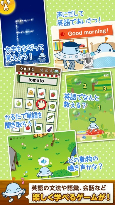 「ワオっち!イングリッシュスクール!楽しく学べるキッズ英語」のアプリとは、累計で500万ダウンロードされた人気のキッズアプリとなっています。英語の会話や英単語・発音なども学べるようになっているので、これから英語を習い始めようとしている人でも歓迎するアプリとなっています。毎月「挨拶・会話」「文法・常識」「ゲーム」「絵本」の4つをピックアップして無料配信もされています。難しい内容となっていないので、誰でも気軽に使用することができます。