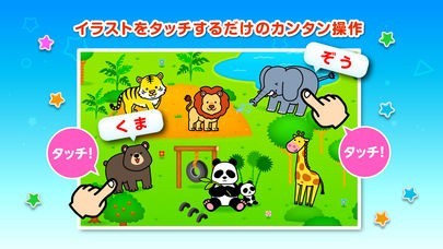 タッチ!ことばランドは、動物や乗り物などを音とイラストの両方で教えることができます。小さな子に言葉を教えるときに、読み聞かせで絵本を使います。アプリでは、音声機能で名前がわかるだけでなく、イラストをタップすると音が鳴ったり動き出したりします。幼児は音や動きに興味を示すので、小さな子供がいる家庭では言葉の知育に役立ちます。 イラストをタッチしていく簡単な操作なので、小さな子でも安心して使えます。子供の好奇心が高まり、親子の会話も増えます。繰り返し行うことで、自然と言葉の量が増えていきます。