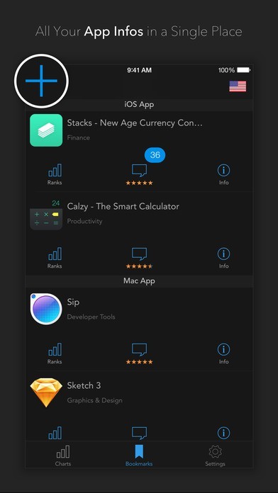 • Track apps (iOS/Mac) ranks and reviews, across multiple stores quickly.