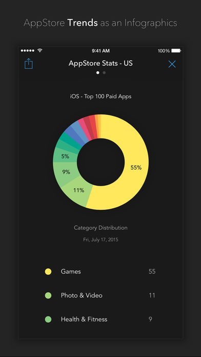 "Great little app for tracking App Store stats. I especially like the infographics showing data on the top charts." - David Barnard