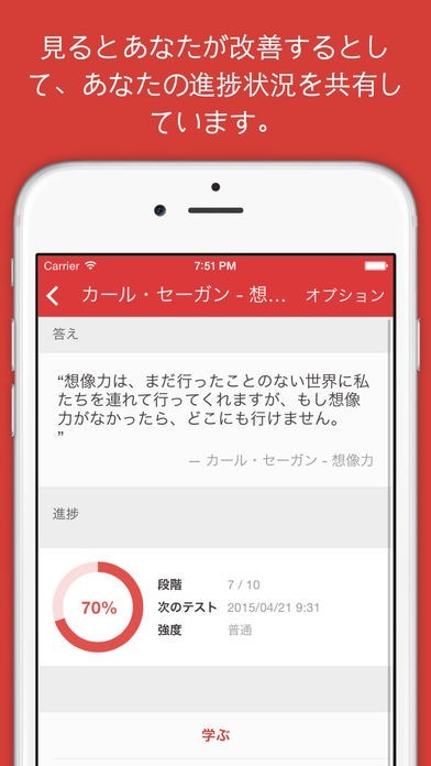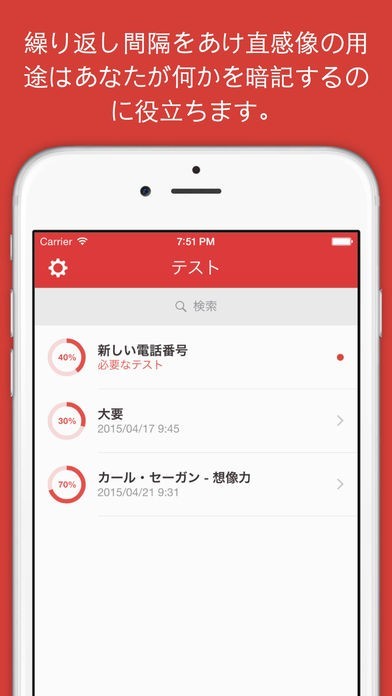 App Storeより引用直感は、重要な電話番号や、面白い言葉や内容を暗記するために間隔を置く反復と呼ばれる技術を使用しています。