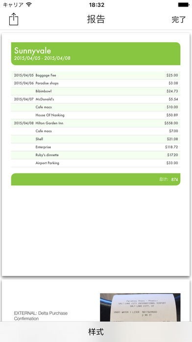 -メール送信、AirDrop、または他のアプリへシェアすることができる支出報告を作成してください!