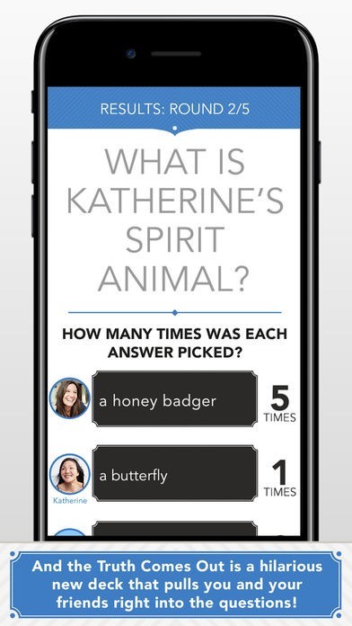 Think you really know your friends? Try playing the brand new “And the Truth Comes Out” deck. Answer interesting questions about one another and choose your favorite answers!