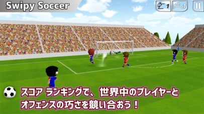 サッカーゲームを遊びたいけれどゆっくりと遊んでる時間はないという方やサッカーのオフェンスだけを遊び続けたいという方にオススメな『スワイピーサッカー』は相手のゴール前から始まりシュートを決めるまでを短時間で遊べるアプリになっています。 ドリブルやパス、シュートなどが指一本のスワイプやタップで直感的な操作で選手を動かせるのでわかりやすくシュートやパスの強さも調節でき戦略の幅が広がります。 ボールを奪われてしまうとゲームが終わってしまい、ゴール決めるとラウンドをクリアできスコアランキング昨日があるので他のプレイヤーと競い合うことができます。