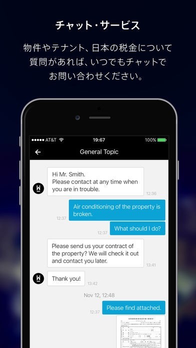 情報を集める際には、メールや電話、FAX等を使用しなければならかった“時間のロス“や、”手続きの煩雑さ“を、解決する便利ツールです。物件所有者は、いつでも、どこでも、自分の保有物件の情報に簡単にアクセスすることが可能で、経済・不動産の動向に関するニュースから、注目の物件情報の紹介まで、多種多様なサービスを、本アプリケーションを通じて受けることが可能です。