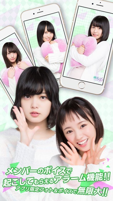 欅坂46のファンアプリで、メンバーのボイスアラームや画像の閲覧、グッズの応募などの機能があります。
