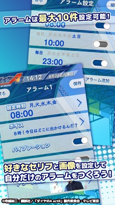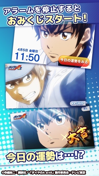 App Storeより引用大人気TVアニメ「ダイヤのA actⅡ」のアラームアプリが登場!