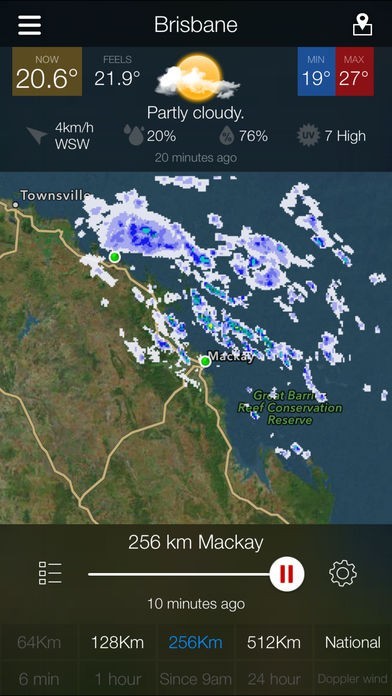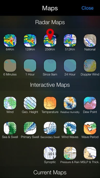 - Radars from 64km, 128km, 256km and 512km to predict when rainfall will reach you.