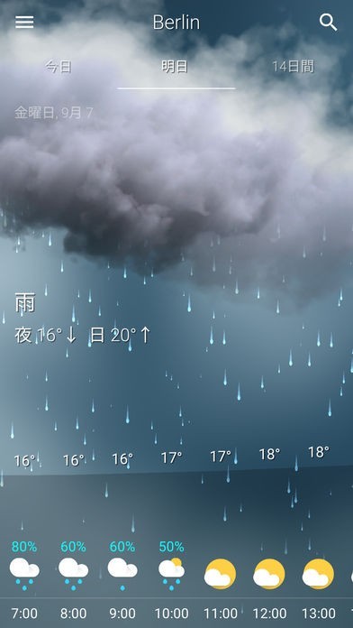 WeatherアプリはWetterOnlineを気象データ提供者として使用しており、どこでも正確な予測が得られます。