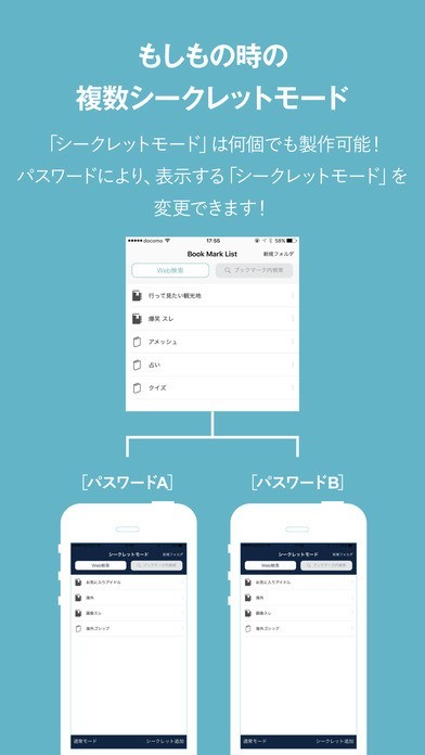 2つのモードで管理しやすい、彼女には秘密のブックマークを持つ彼氏さんにもぴったり!