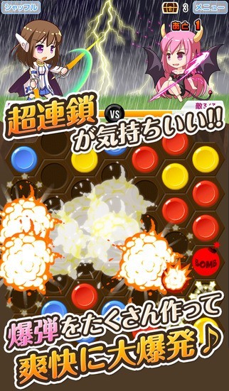 パネルを長く繋げて爆弾爆発!一気に消える爽快感がたまらない!