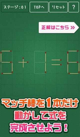 ルールは簡単、「1本だけマッチ棒を動かして、算数の式を完成させます。」