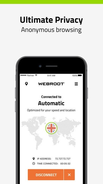 App Storeより引用Webroot® WiFi Security is different from a traditional VPN. It adds a layer of protection for your valuable information, but isn’t demanding or difficult to set up. It just takes a single tap or click to activate all your protection features, so you know your connection is secure, anonymous, and most importantly, private.