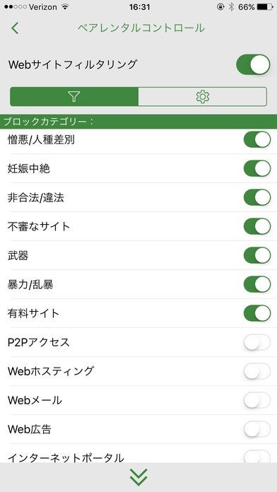 App Storeより引用ウェブルートの「ペアレンタル・コントロール」は、お子様のオンライン上での活動を制限できる管理ツールです。シンプルなガイダンスと保護が提供でき、お子様にとって有害なコンテンツやウェブサイトにアクセスできないよう、80を超えるカテゴリーで制限をかけることができます。