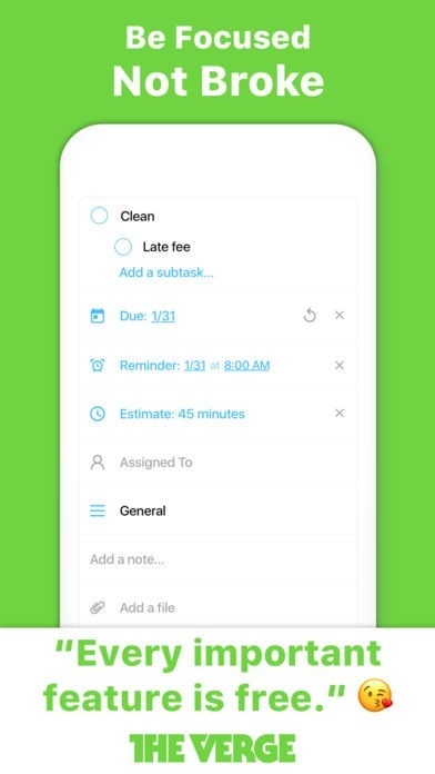 Whether it’s homework, a party, or Keeping track of what you need to get done has never been easier. Add subtasks, due dates, repeat, reminder, notes, and attachments free and synced between all of your devices.