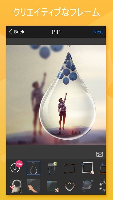 雫の中に写真が入る等のオシャレなフレームも種類豊富です