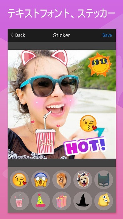 自撮り写真が撮影出来るだけでなく、フィルターやスタンプも多種類!操作も簡単の為初心者でも出来てしまうアプリ!